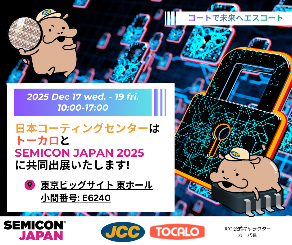JCCは25/12/17 (水) -19 (金) に東京ビッグサイトで開催される「SEMICON Japan 2025」に親会社トーカロ株式会社と共同出展いたします。